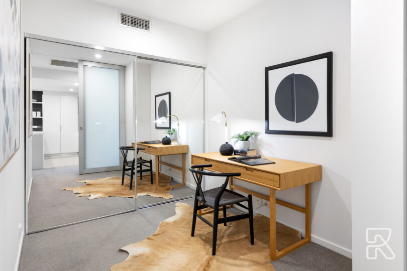 Unit 104 is one of the few floor plans in the complex with two bedrooms and an additional study.