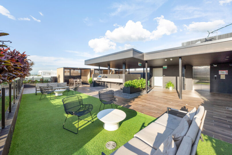 Next level luxury unfolds on the building’s spectacular rooftop, complete with sweeping city views providing a magnificent backdrop by day and night. There’s a sunken pool, sunlit lawns, private cabanas as well as barbecue and seating areas for functions. Your favourite weekend destinations, such as Howard Smith Wharves, Jan Powers Farmers Markets and James street are close by.