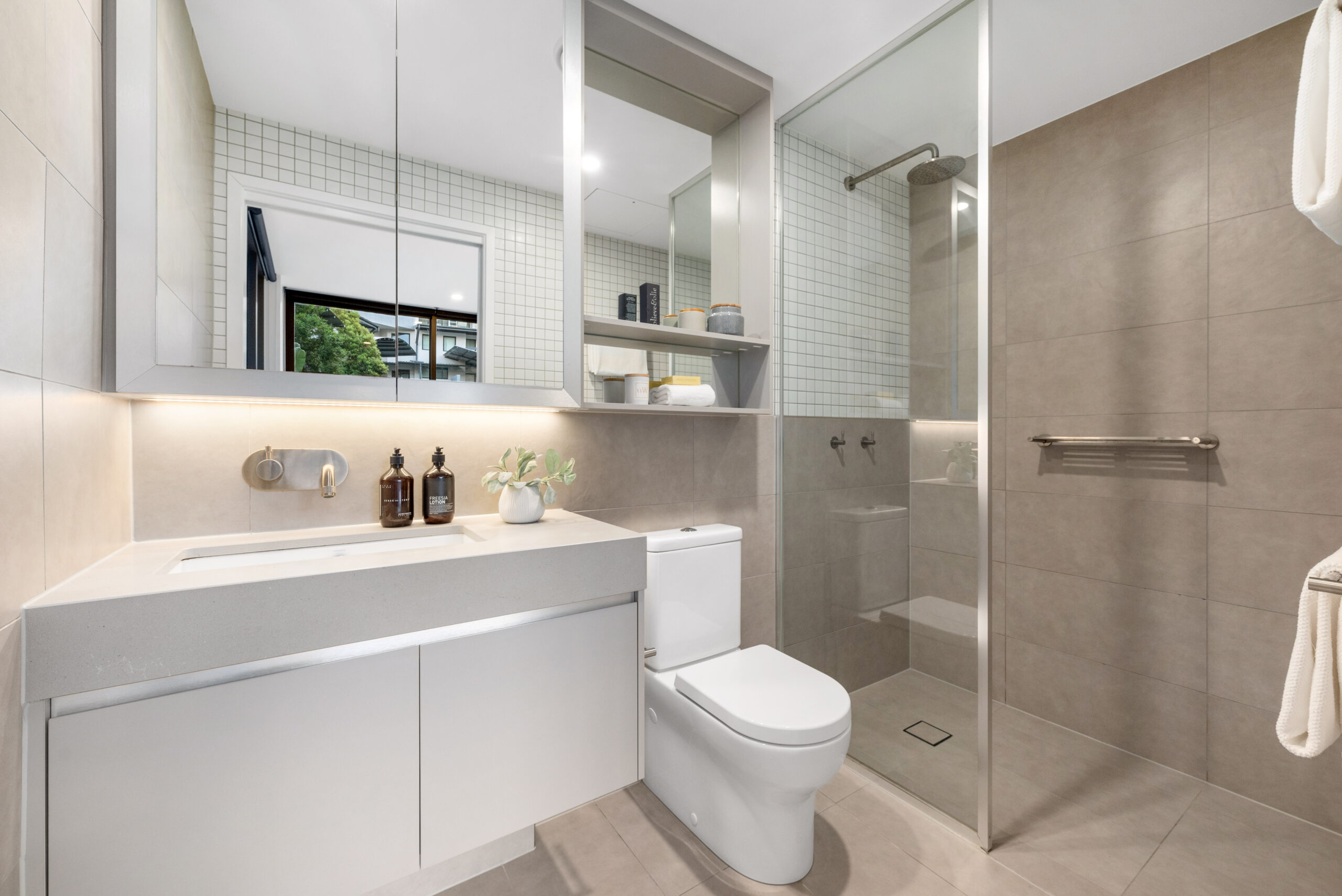 • Equally stylish bathroom and ensuite with detailed tiling