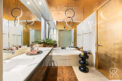 • Primary with gold burnished walls, built-in TV, custom built-in robes