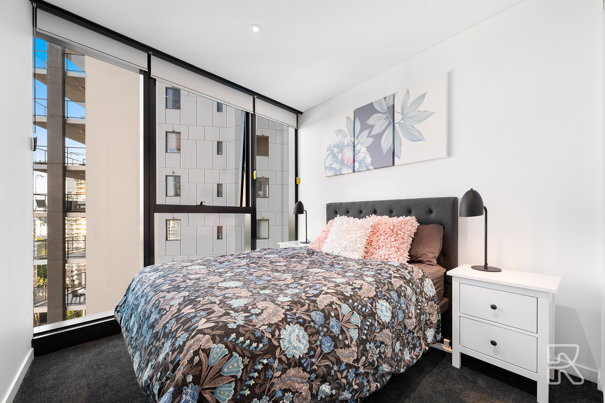 • Good sized bedroom with built-ins and floor-to-ceiling windows
