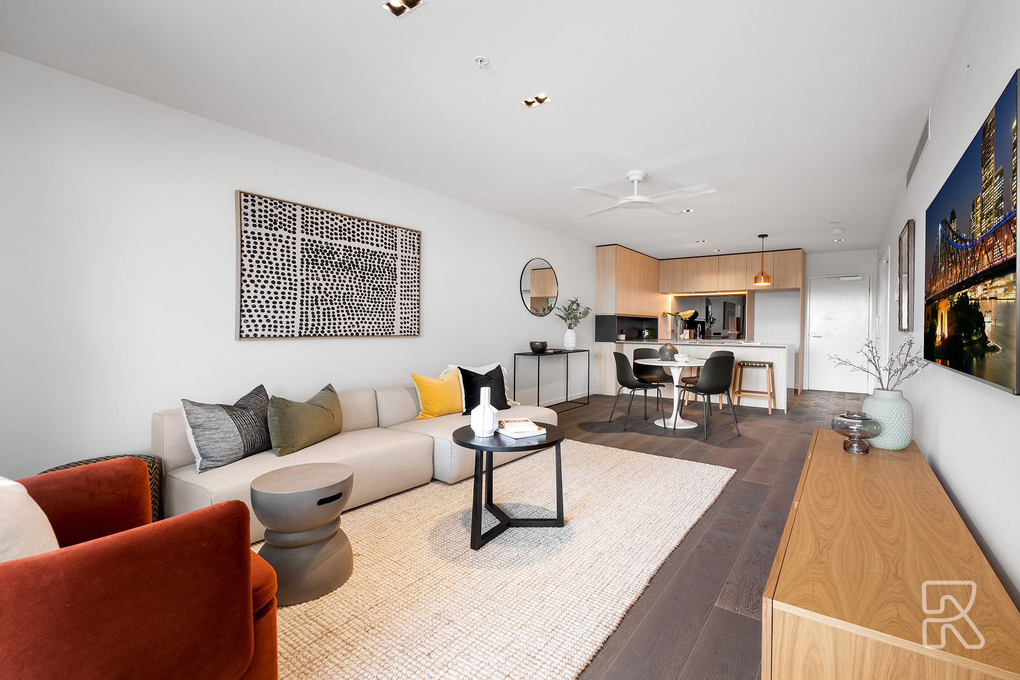 • Stylishly presented living/dining area with contemporary décor